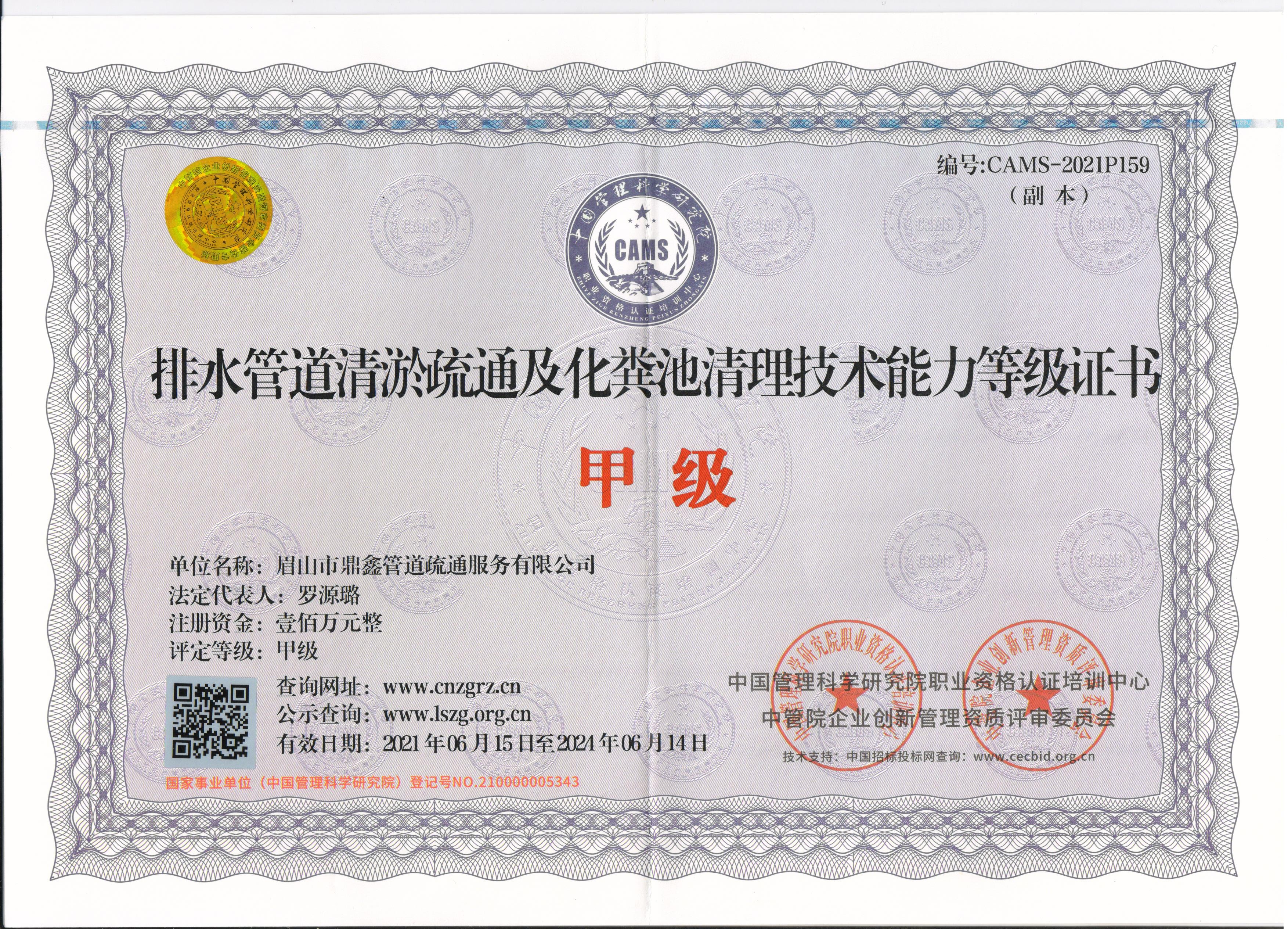 眉山市鼎鑫管道疏通服務(wù)有限公司